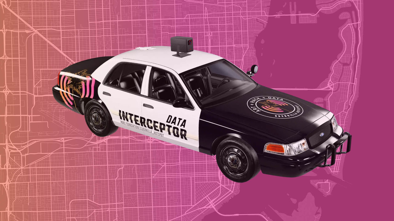 Guerrilla Hotspot is an installation of free Wi-Fi hotspots that has been presented in Los Angeles, US., and San Juan, PR. before, and is now active at MUD Foundation to serve the Little Havana neighborhood where it is located. The artist provides these local communities (the immediate radius of people around the nanostations) with access to free Internet, in exchange for collecting the metadata they generate when using it –given their previous consent. The information collected is analyzed and then projected in the space, in real time. The tracking technology –similar to that used by commercial Internet servers– is hooked up to a VR software for data visualization. The information is converted into abstract maps of connections that, as it happens every day with the information we give to commercial servers, could be overseen and remain at a retinal level because of their beauty. Anyhow, the immediacy of the piece, which hopefully can be understood by a fragment of the Wi-Fi Internet users in the community, reveals the dynamics of connectivity and surveillance nowadays.