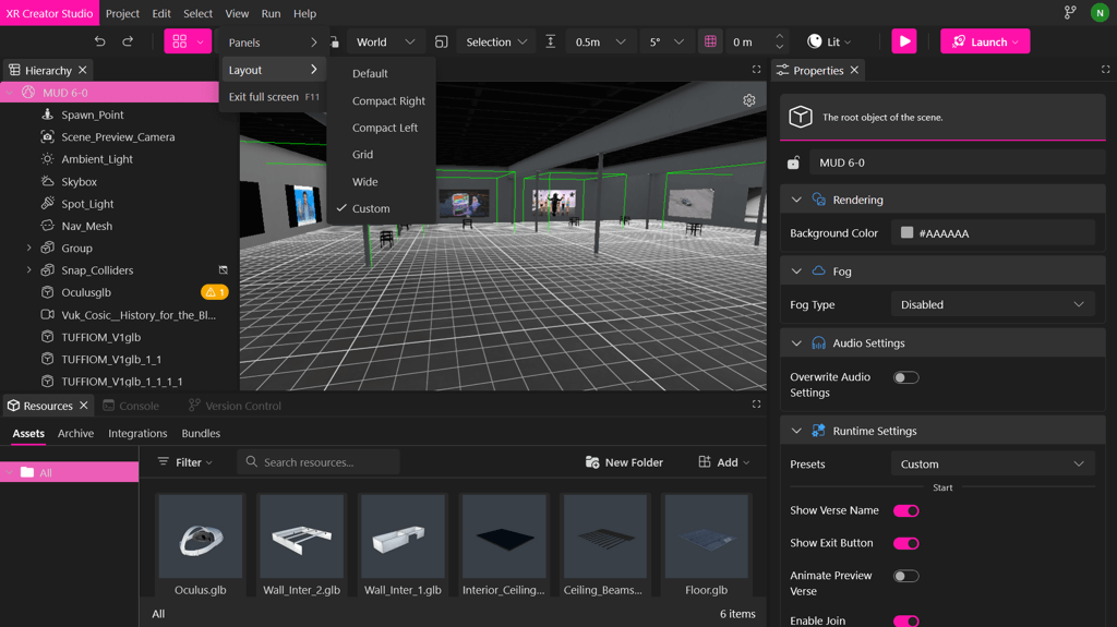 Dockview React Layout Engine — The panel system has been upgraded to Dockview React, delivering a more robust, flexible, and customizable layout experience across XR Creator Studio. Learn More.